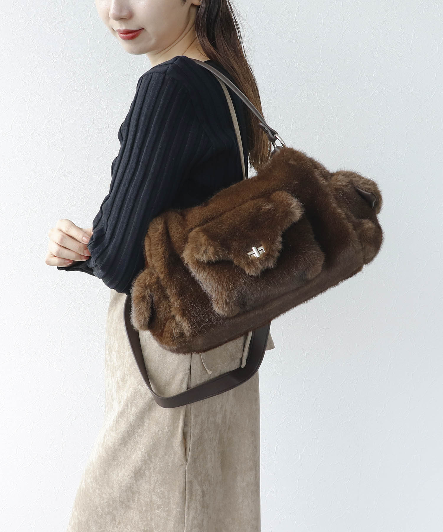 フラップポッケ2WAYファーショルダーバッグ
