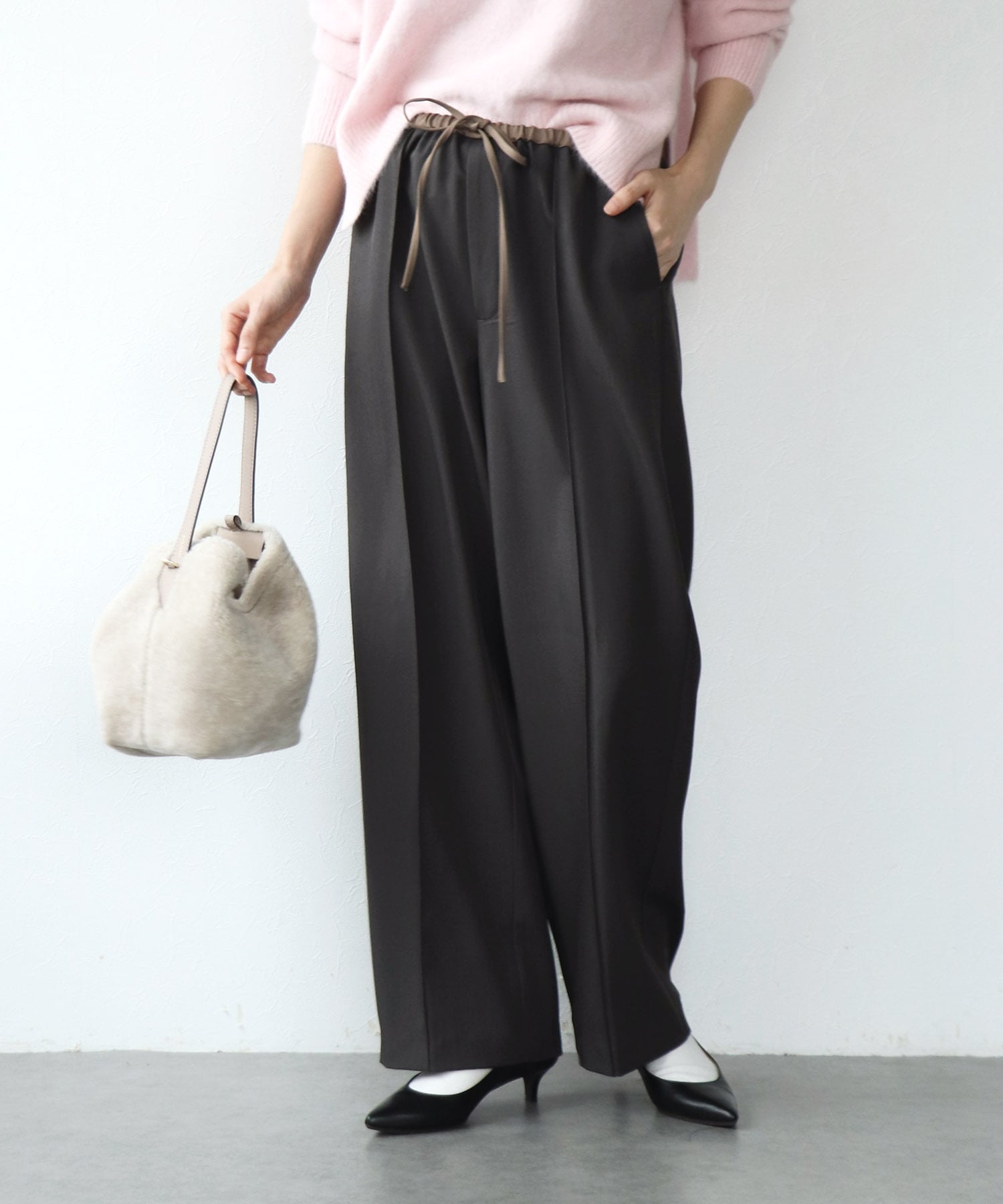 落ち感があり、ウエスト配色が今っぽく仕上がるイージーパンツ。