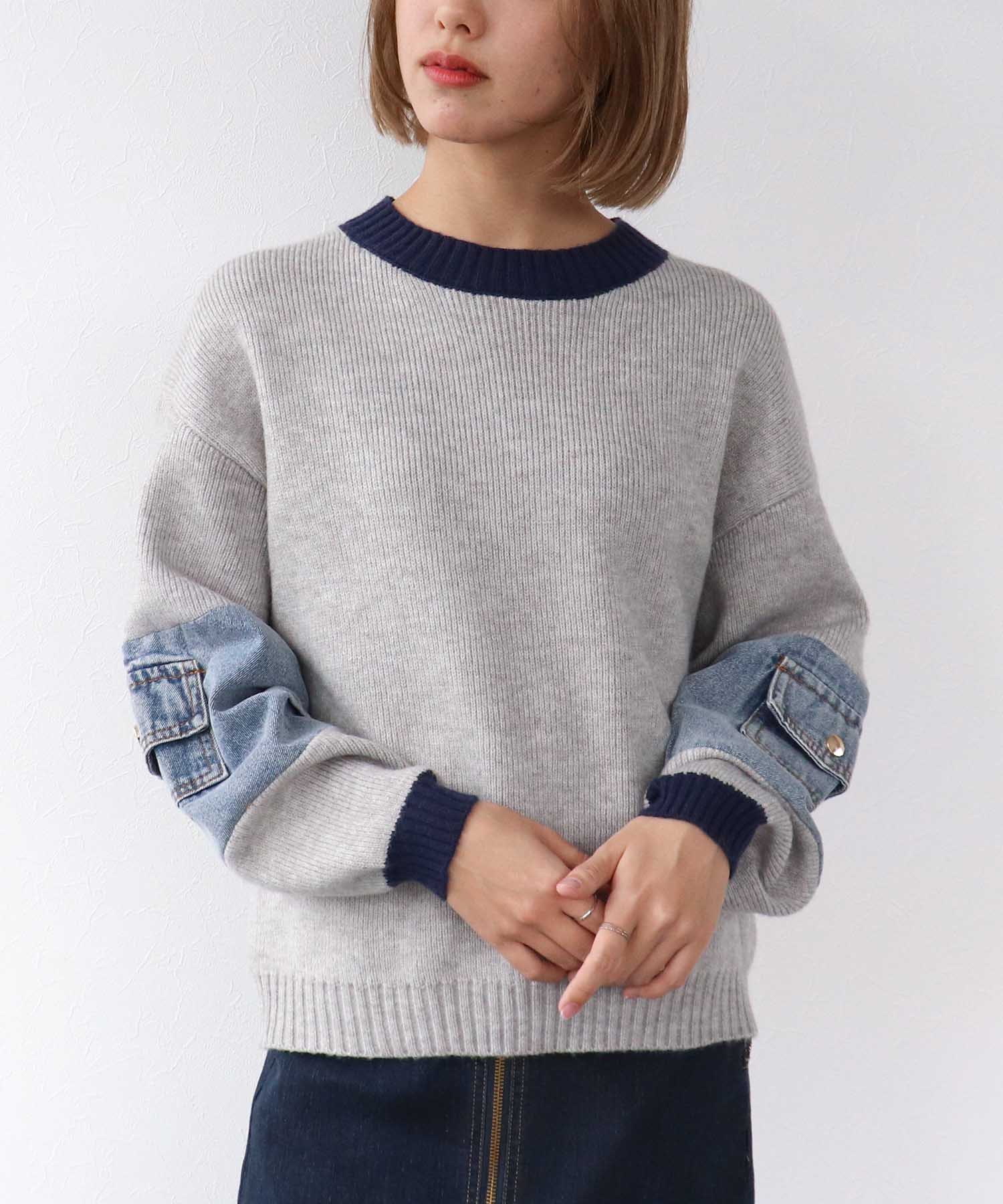 モチモチした着心地のニットとデニムのドッキングが可愛いプルオーバーです。