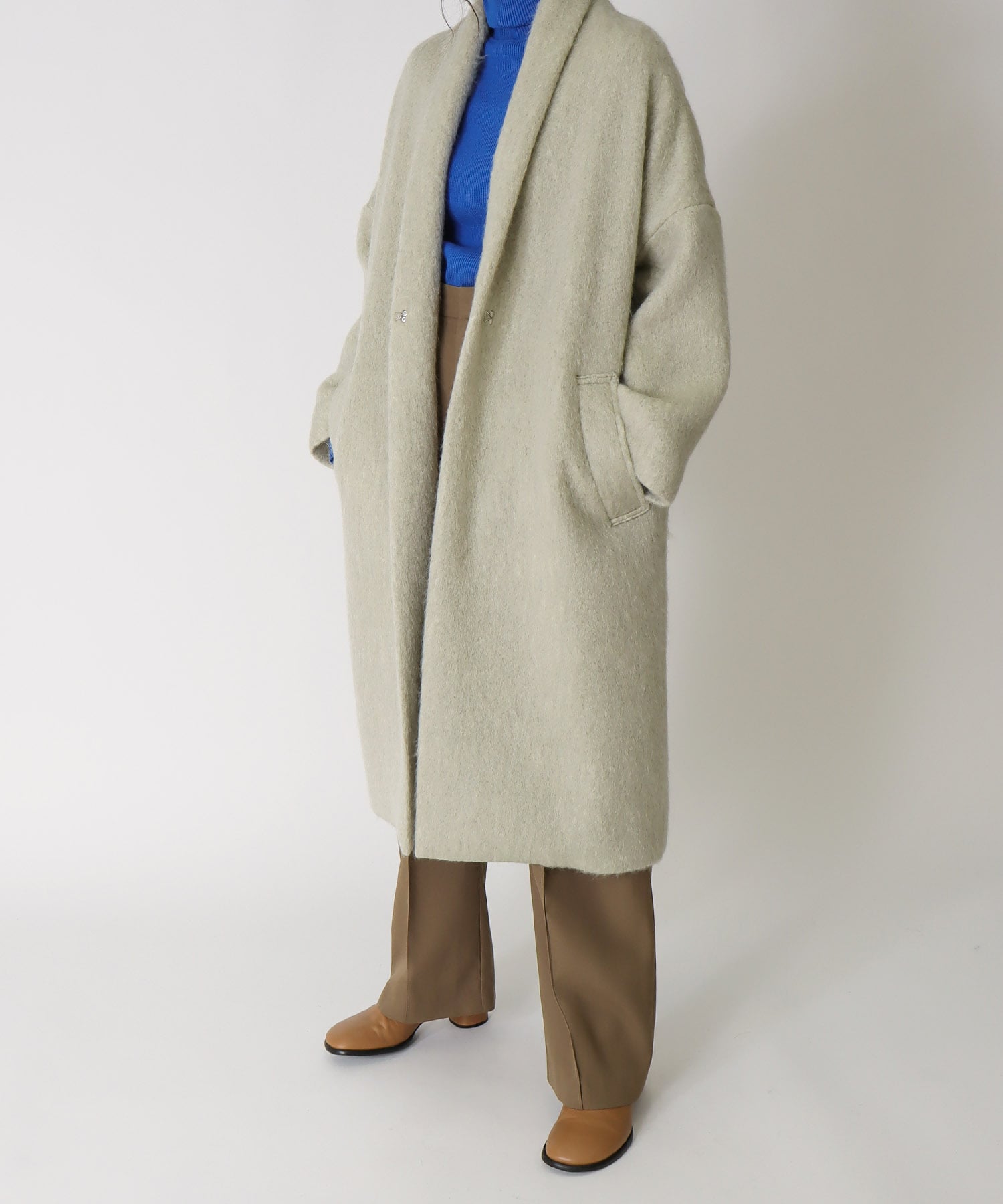Nakanishi 153cm DRESSLAVE DRESSLAVE梅田エスト店 2025.12.01 モヘヤを使用したシャギー素材のショールカラーコートは、ふわっとした柔らかな質感が魅力。非常に軽量かつ保温性に優れた贅沢な一枚。複数のカラーがミックスされた色合いが、奥行きのある上質さを演出してくれます。レイヤード風のハイネックプルオーバーは一枚で着映えし、ジャケットなどのインナーにも最適な一枚。シルクのカシミヤをブレンドしたお素材で肌あたりが滑らかで着心地抜群です。フレアスカートはロングコートからチラ見えするランダムな裾がアクセントに。微起毛でマットな質感がコーデに上品さをプラスしてくれます。 掲載アイテム <B7>mohair shaggy shawl collar coat ¥63,000 layered high neck pillover ¥18,000 random flare skirt ¥22,000 <LORISTELLA>EMMA Fluffy ¥28,000 体型カバー20代DRESSLAVE美シルエットお出掛け低身長大人カジュアルカジュアルコーデスタッフおすすめ大人かわいいアウターコートカットソースカートロングスカートワントーンコーデ骨格ストレートイエベ春ブルベ夏