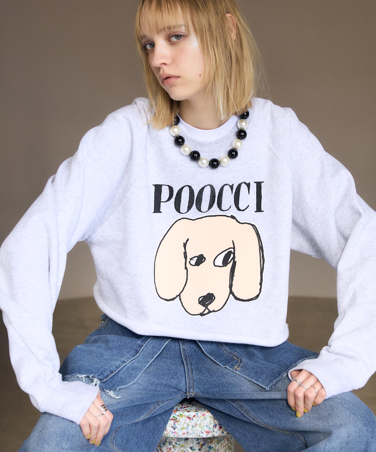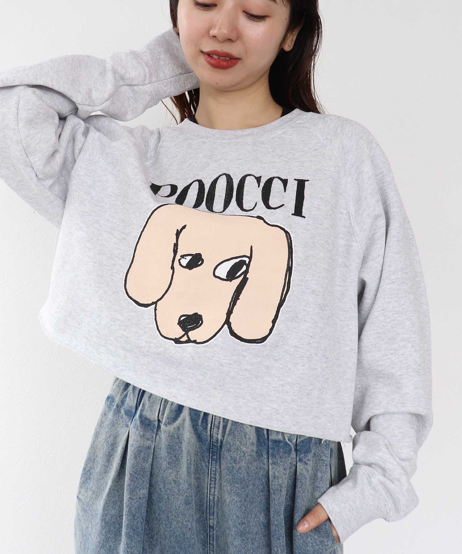 わたしの大好きなブラックスコア♡クロップド丈でわんこのプリントがなんとも言えない表情🐶ハンドプリンだからこその遊び心あるデザインです♡
