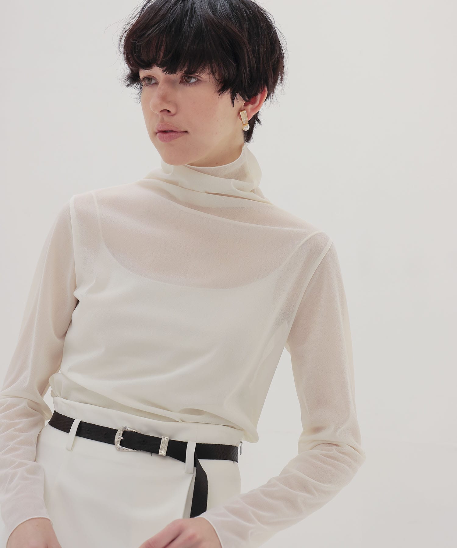こだわりはネック部分のくしゅっとした重なりの見え方。衿端は外側に折り返さずに内側に入れる事で襟の高さの調整でふんわりとした衿元を演出できます。