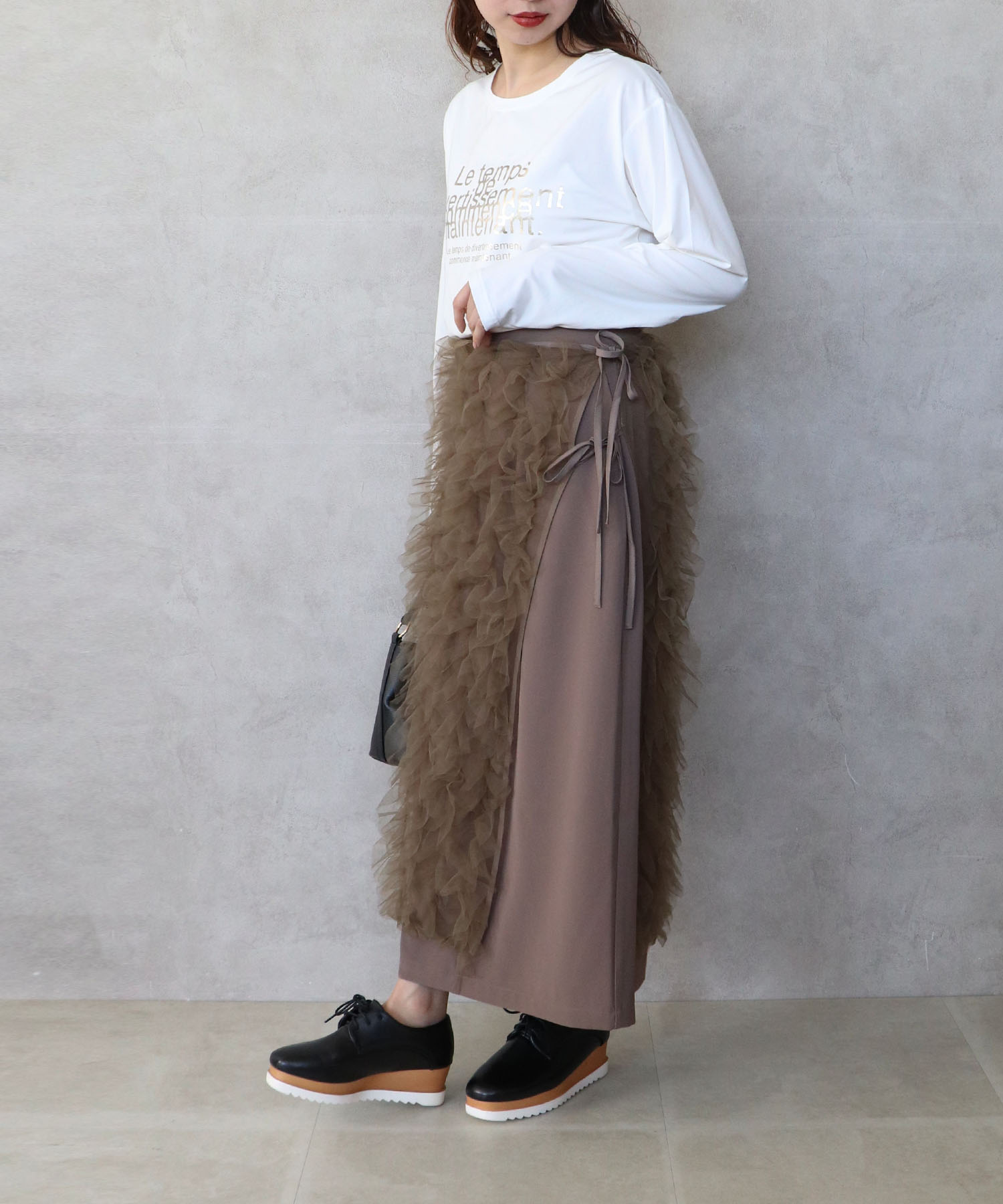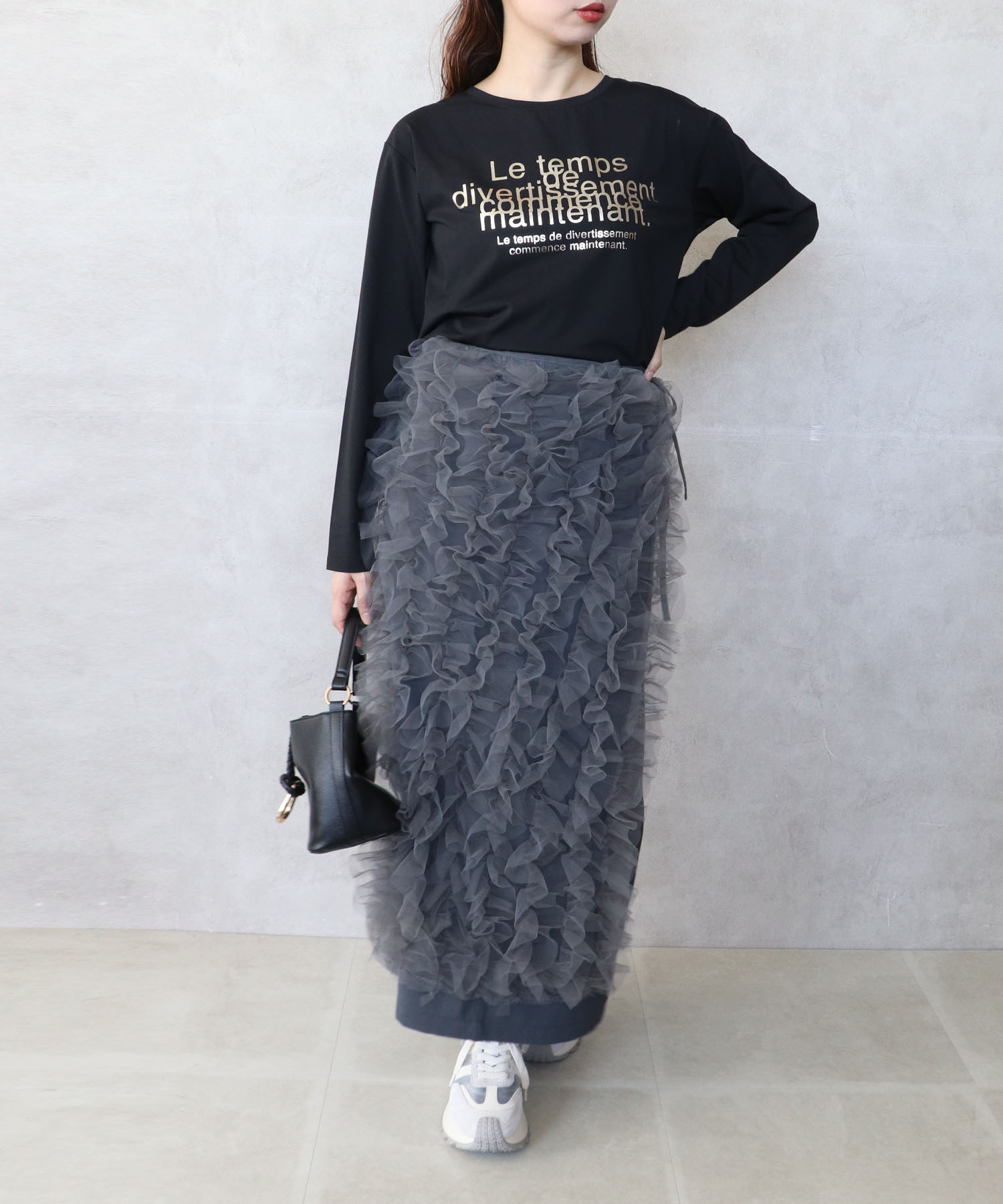 👖トップスにチュールを使ったのでナロースカートのみで合わせました♡シンプルなのでトップスを選びません!!