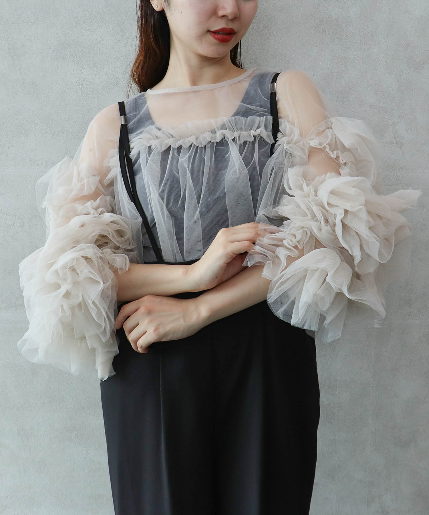 👕お袖部分のたっぷりチュールフリルが目を惹く1枚です♡