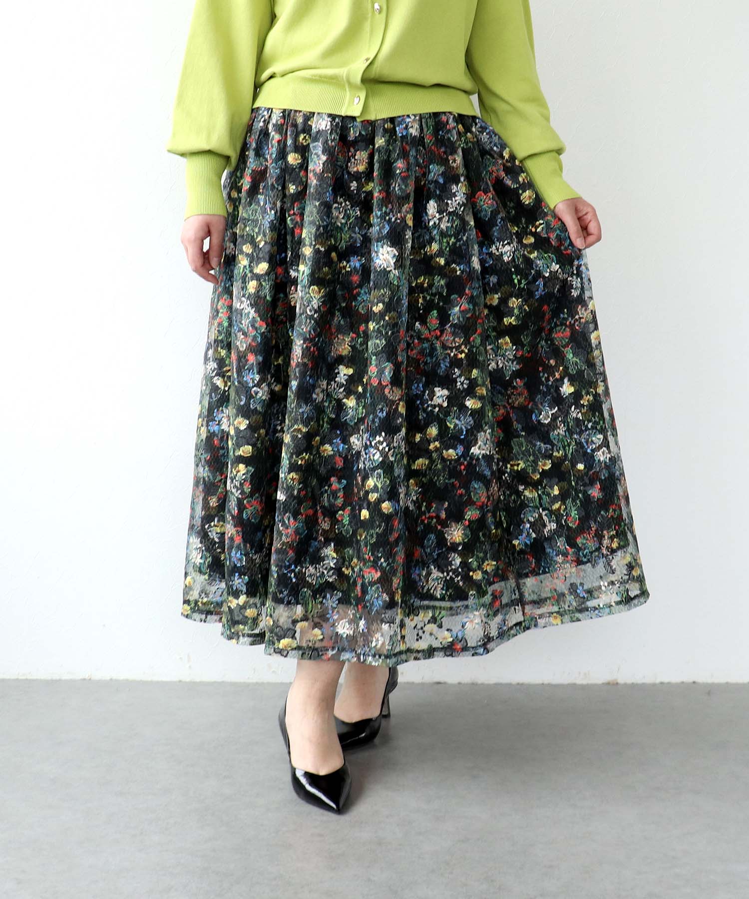 店頭で大人気の刺繍フラワーフレアスカートです。