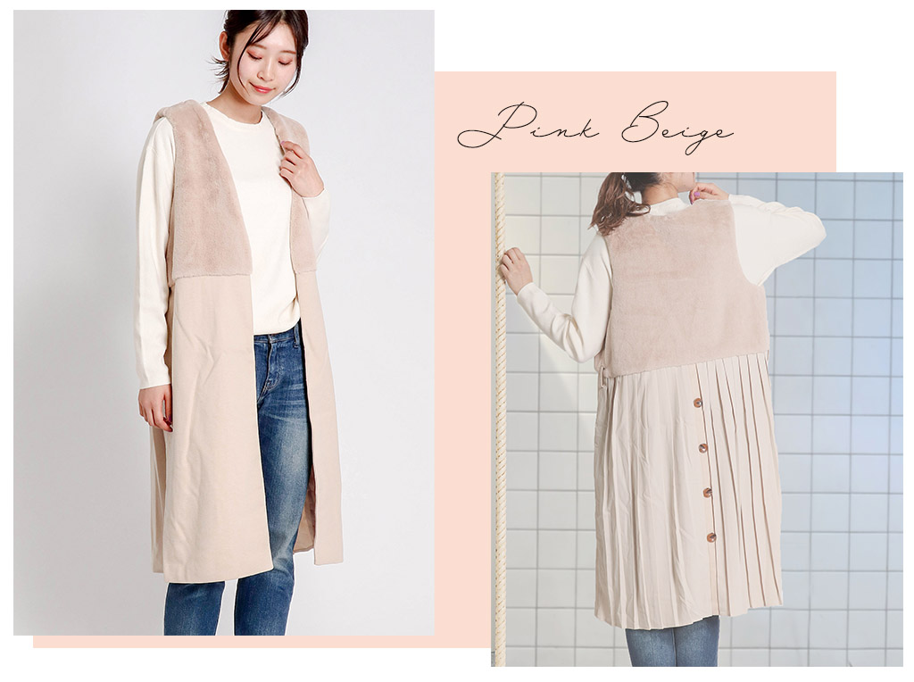 ファー部分が上半身に視線を集め、さらに配色ラインが縦のラインを強調してくれるので、スタイルアップ効果も期待でき、ウエストやお尻が隠れる着丈だから、体系を気にせず着用できます。 ニットとファーで可愛らしく、しっかりと暖かい秋冬コーディネートが叶うジレです。
