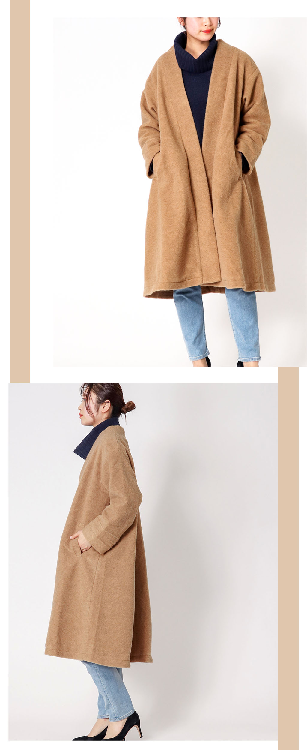 オープンフロントの抜け感のあるローブ風のシルエット。サッと羽織ってコーデが完成する使い勝手の良いシンプルなデザインが◎