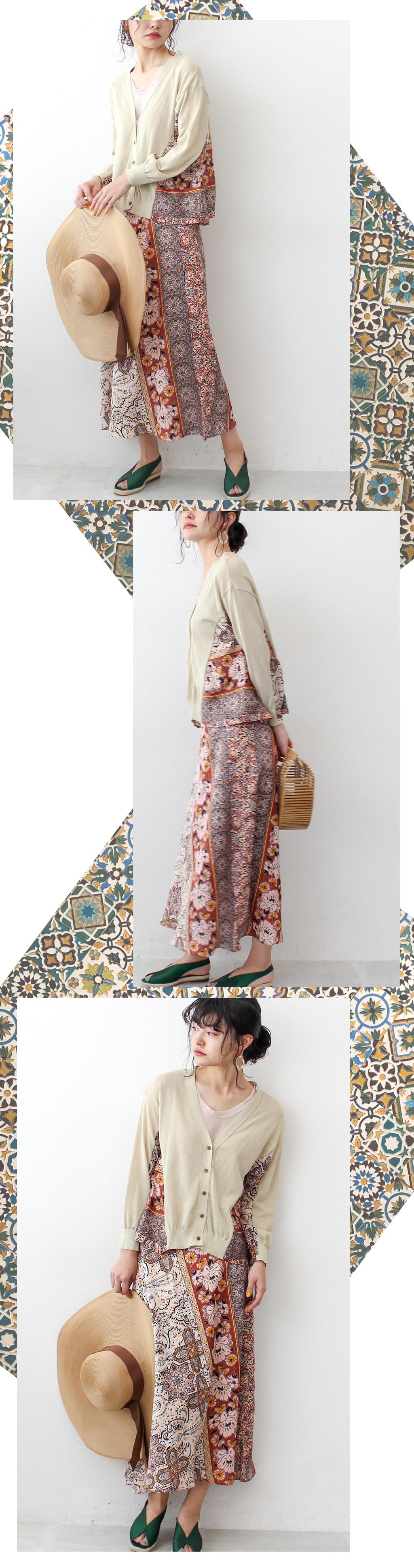 配色にしたフラワープリントや、インド柄のパネルプリントなど、気分の上がる春アイテム!