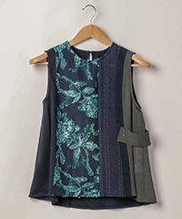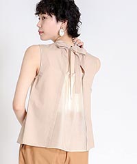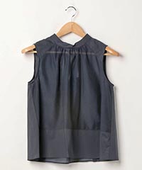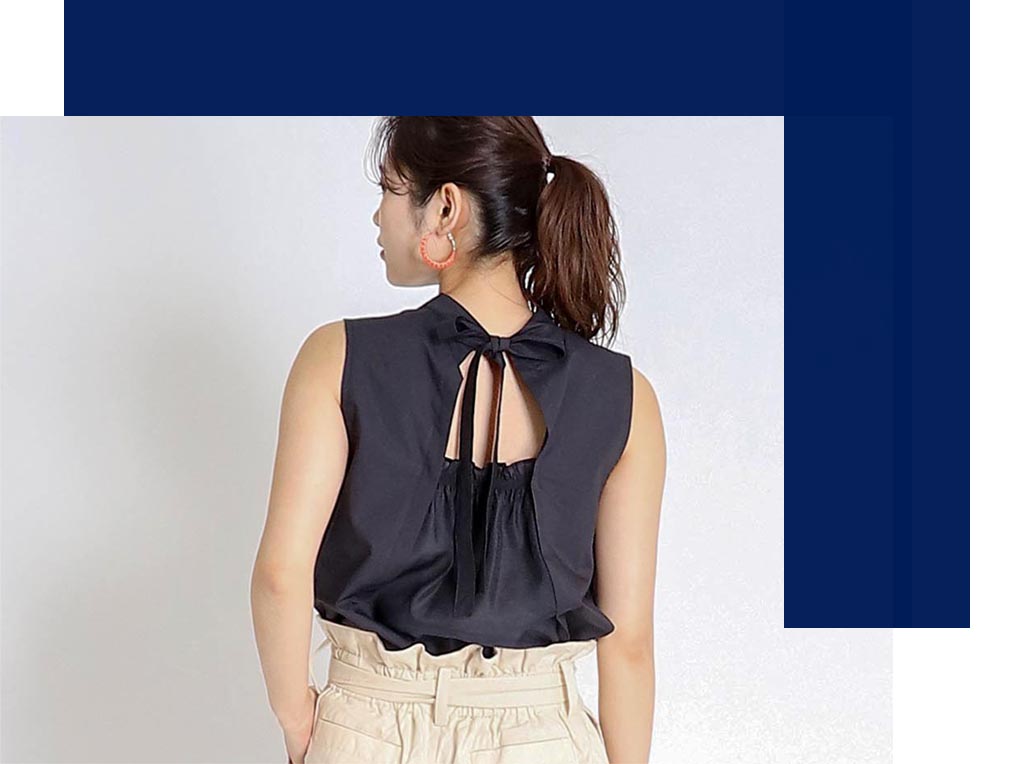 バックの背中あきが女性らしい程よい抜け感がポイント◎高密度のハリ感があるタイプライター地とシアーオーガンジーを使用したブラウス。