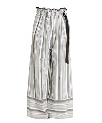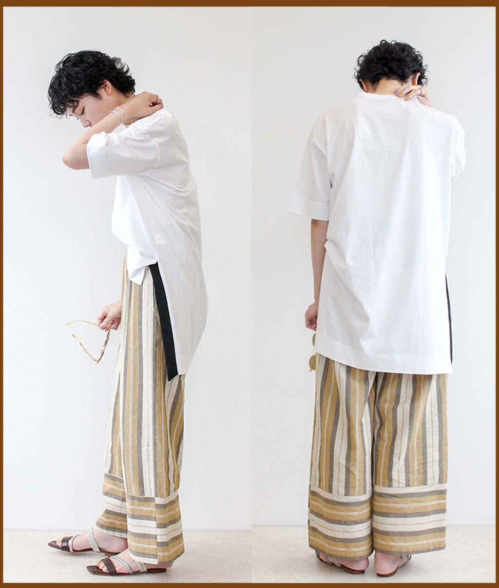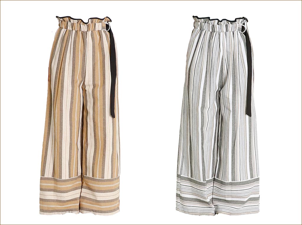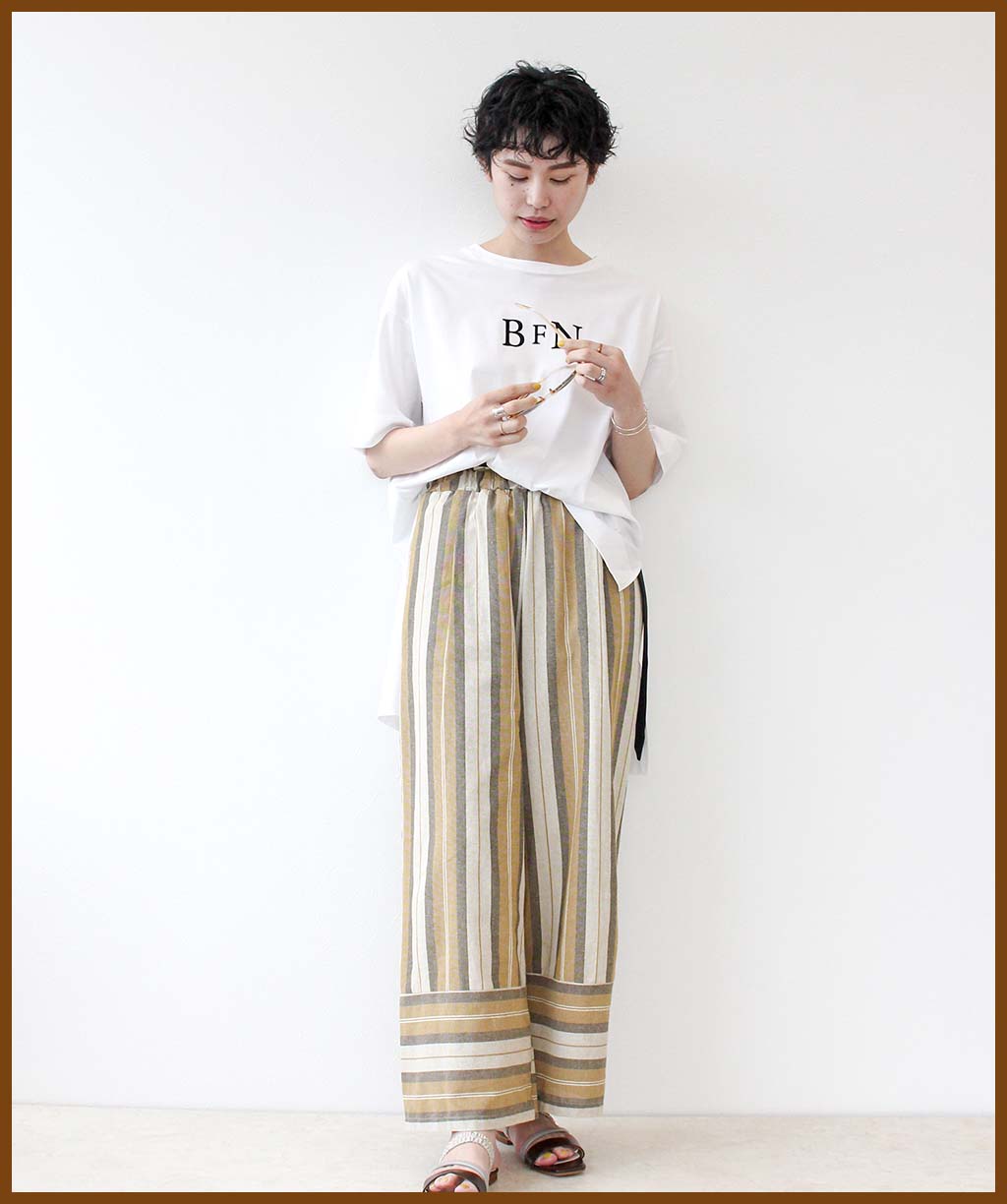 リラクシーな抜け感リネンパンツ。ネイチャーカラーのストライプ柄がトレンドライク!