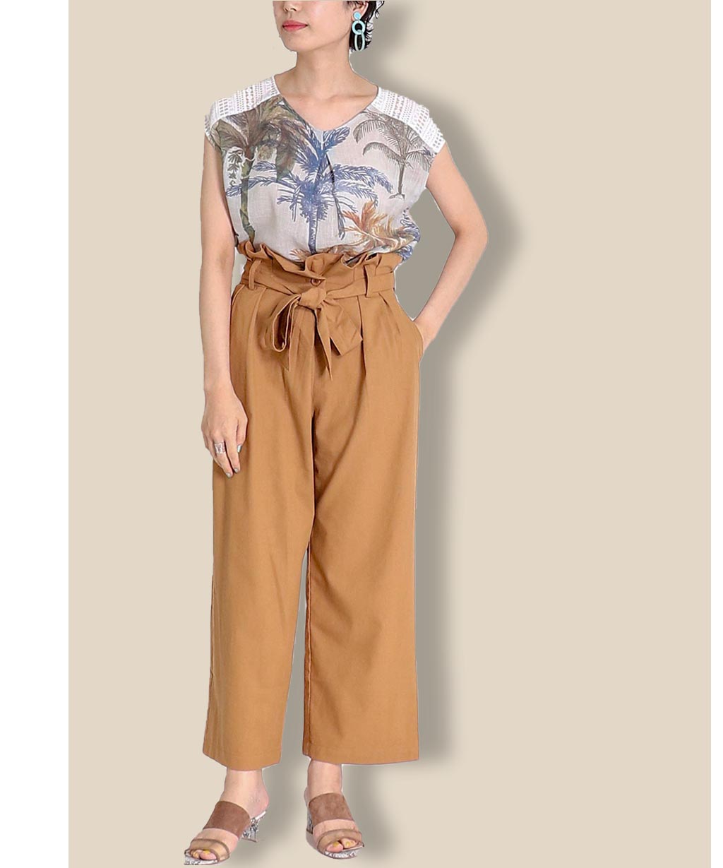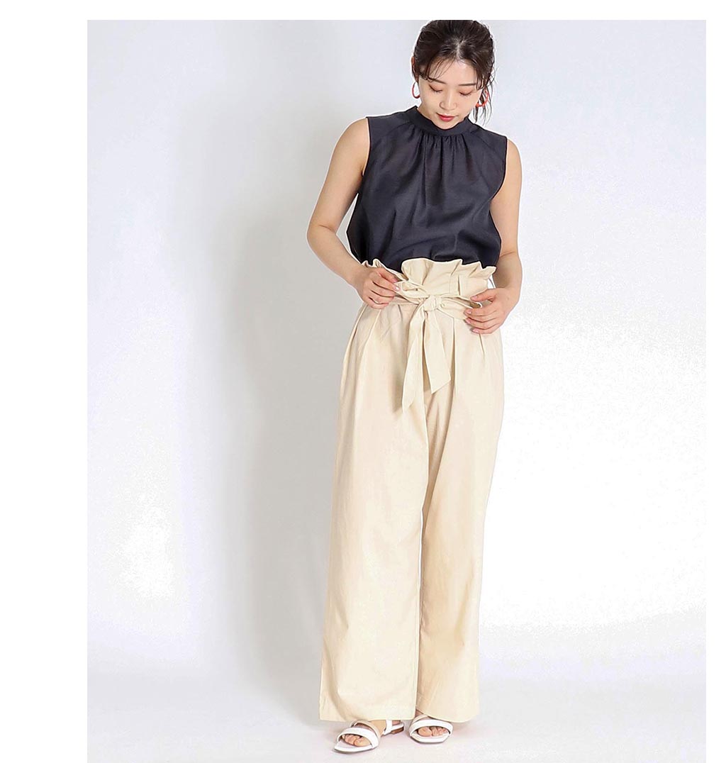 ウエストの大きめタックと、リボンがポイント。ハイウエストでスタイルもよく見える!?