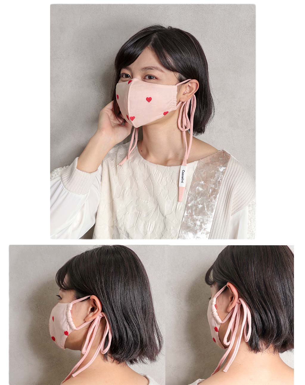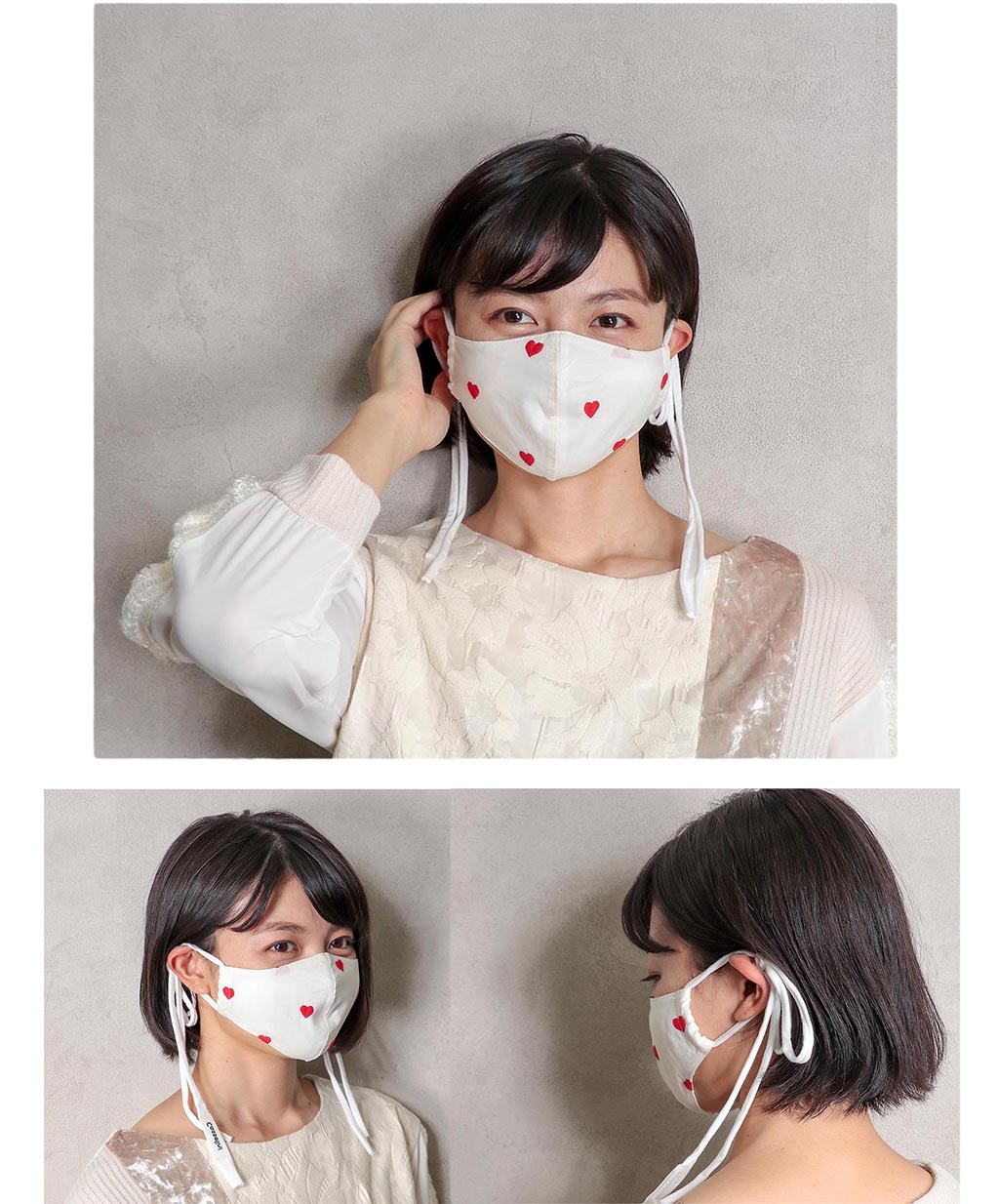 ハートの刺繍が入った乙女心をくすぐるマスク。