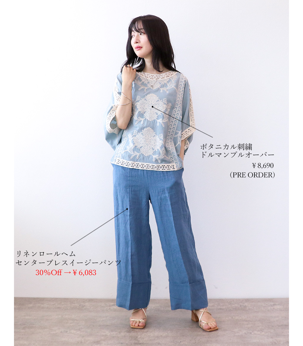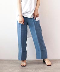 涼し気なリネン素材のパンツはセンタープレスが効いているので、カジュアルすぎないところがGood!