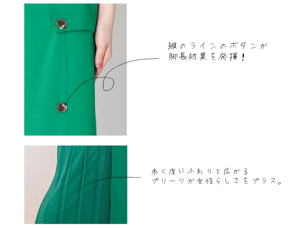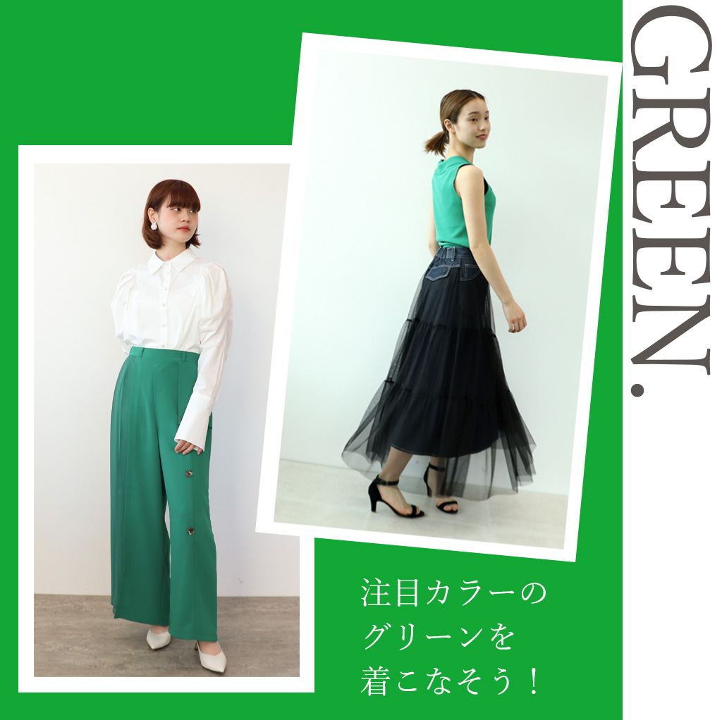 今年はさまざまなカラーものが出ていますが、ひと際際存在感を放っている「グリーン」。鮮やかかつ深みのあるカラーで、この春夏の注目カラーです!