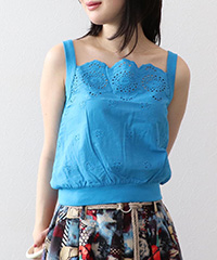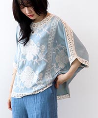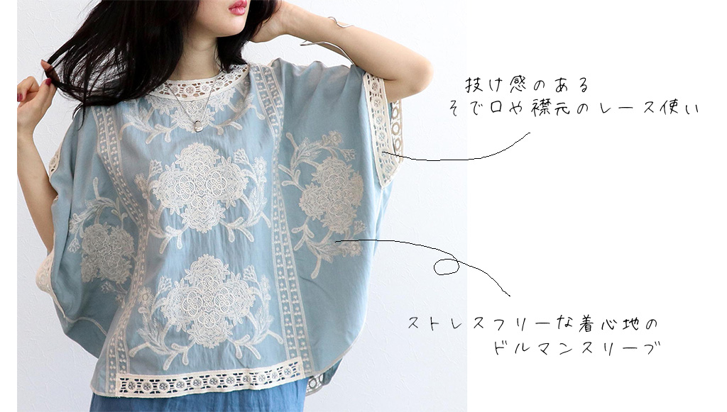 ボタニカルモチーフのホワイトカラーの刺繍が抜け感をプラス。