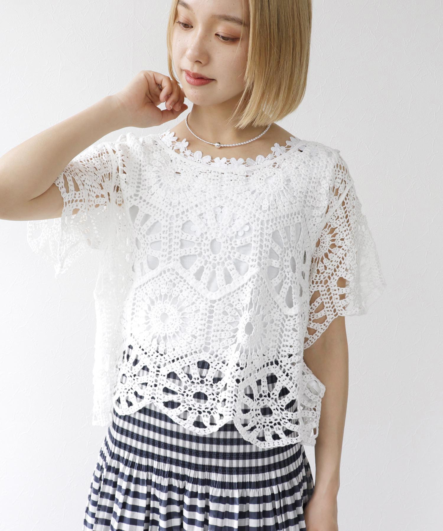 | クロシェ編みハーフスリーブトップス ¥5,390 |