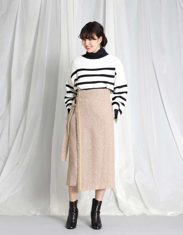 ほんのり春の雰囲気漂うボーダー柄ボートネックニット