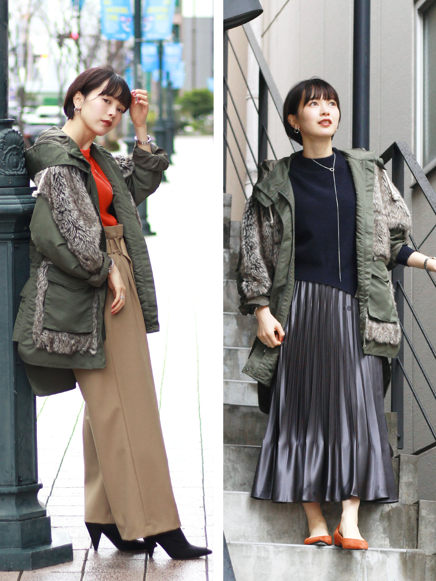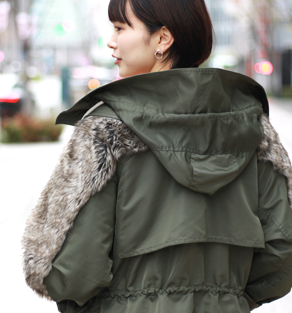 異素材を組み合わせたデザイン性のある防寒アウター。