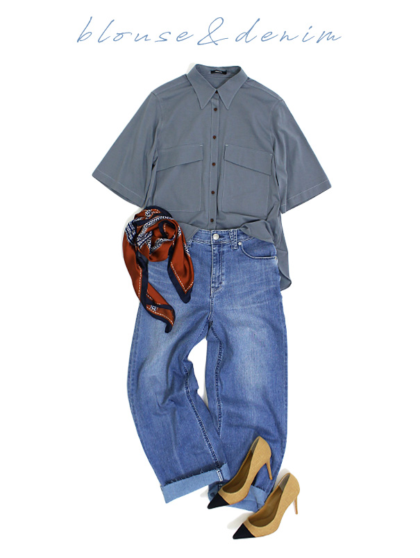 トーンの違うブルーで鮮度のあるワントーンコーデに。