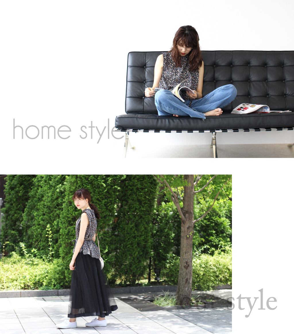お家で過ごす日もプリントブラウスで気分をあげて。