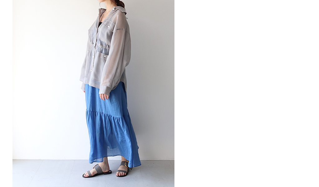 シアーシャツを合わせてスカート風に。