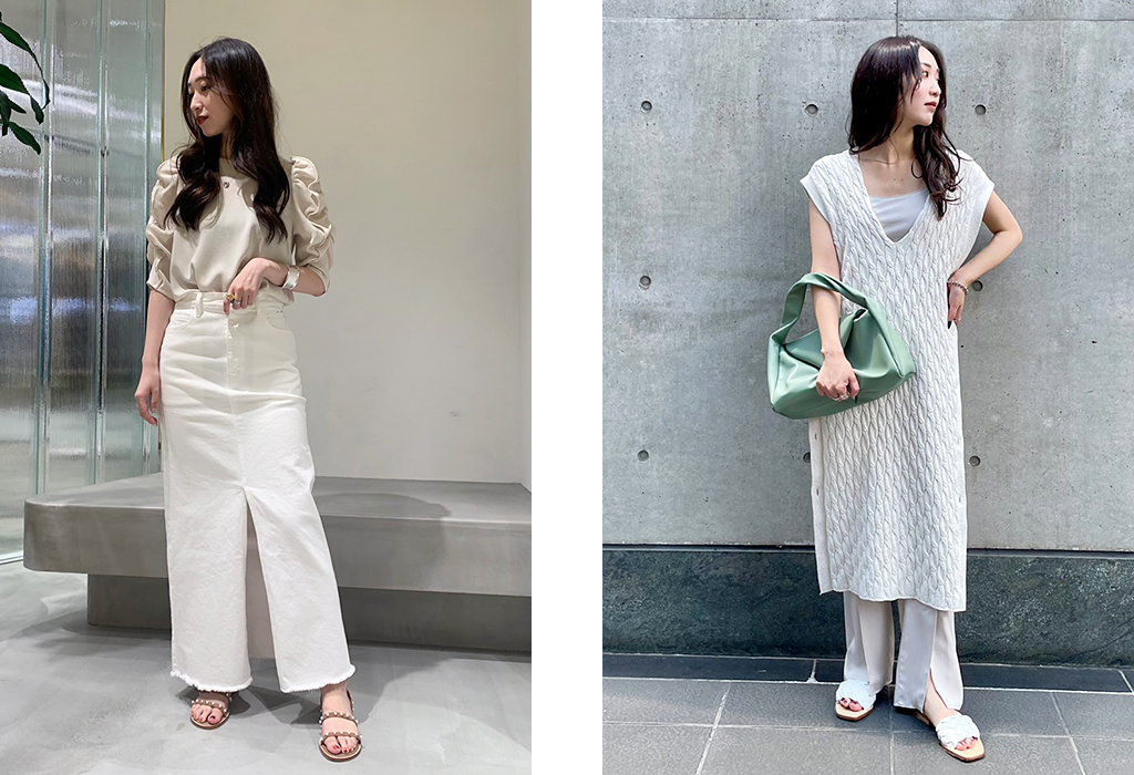 クリーンな印象のホワイトコーディネート。