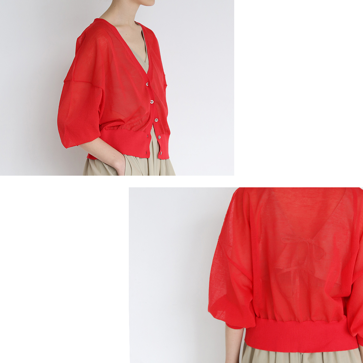シアー感があることで派手になりすぎないカーディガン。