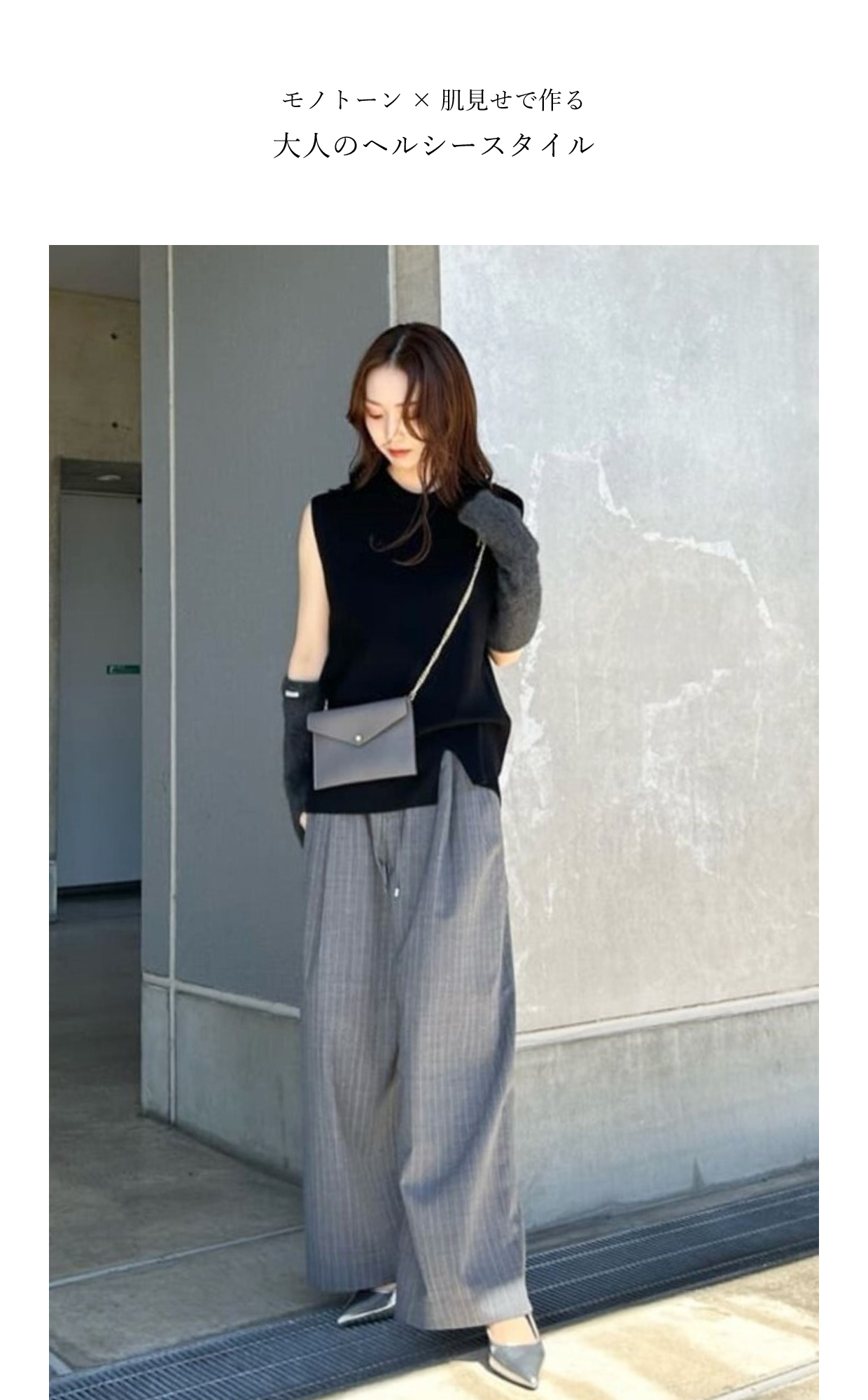 トレンド感のあるミニマルな着こなしを