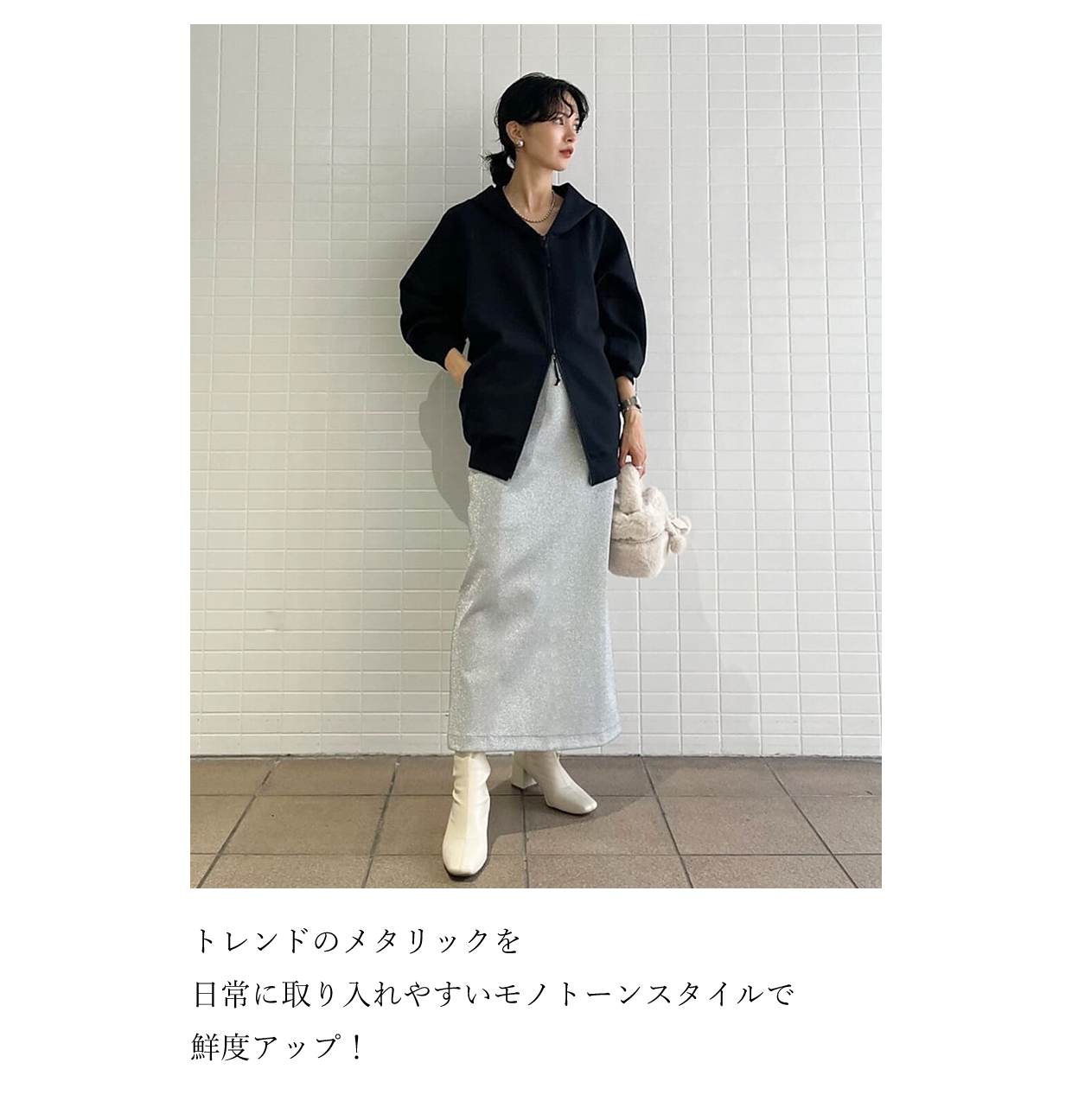 定番の"モノトーンスタイル"をブラッシュアップ。