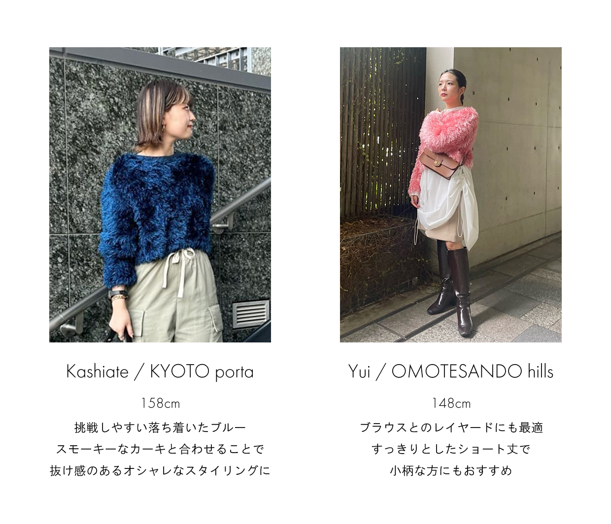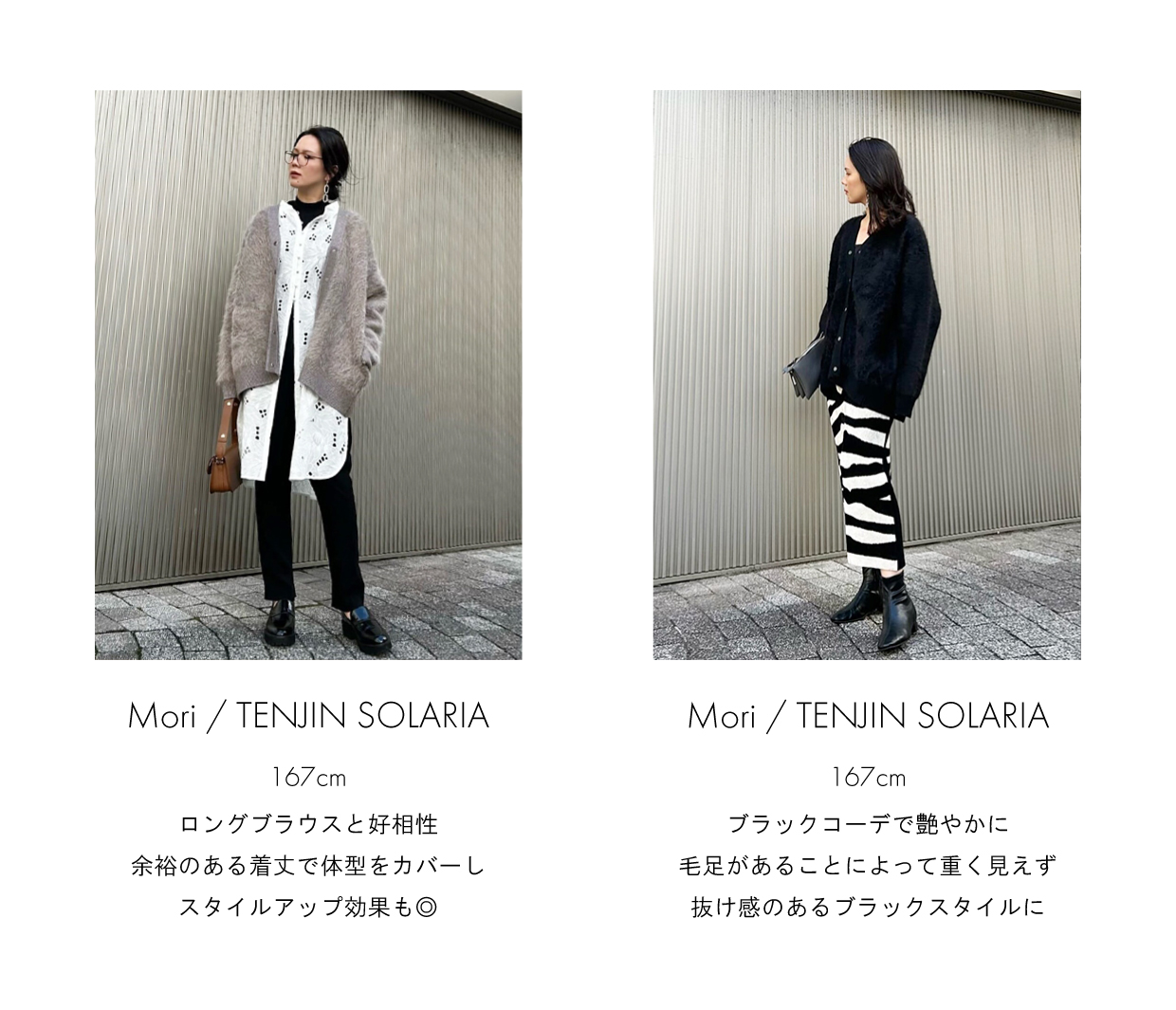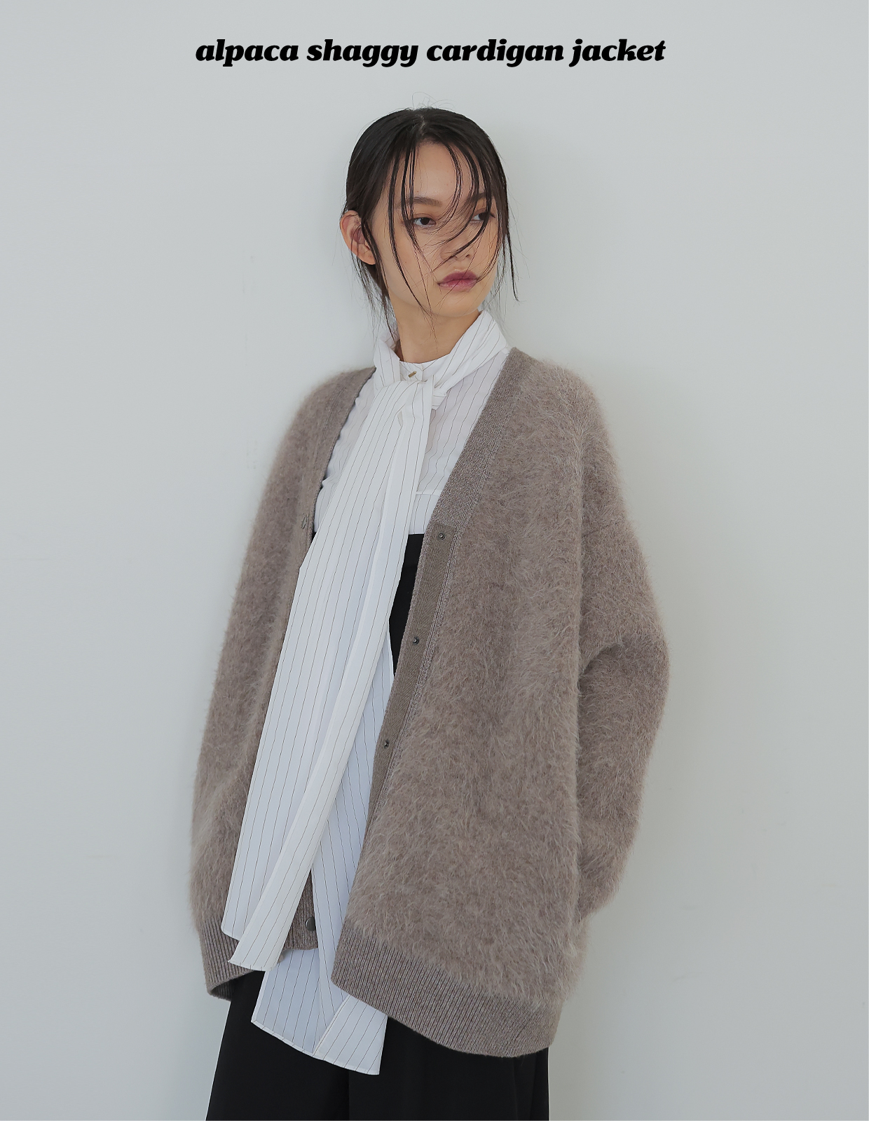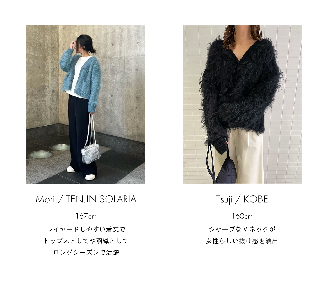 ランダムでカリーな毛足がプラッシュ感のあるカーディガン。