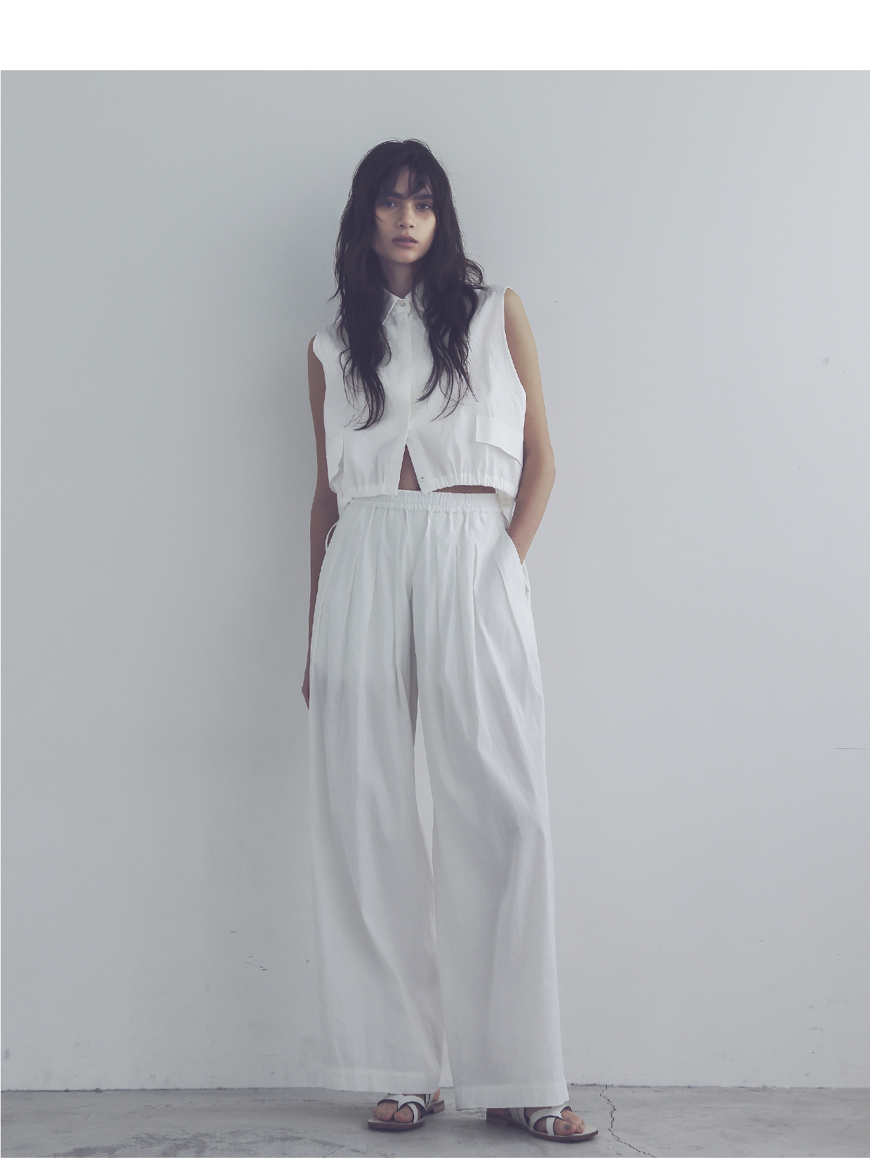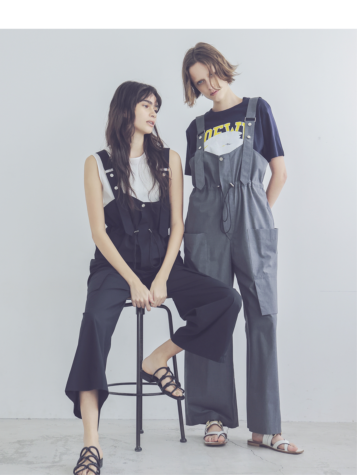 軽量でクリアな表面感が肌触りの良いサスペンダーパンツ
