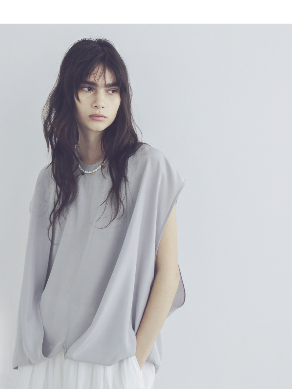 上品なアセテートタフタ素材の光沢が美しいセットアップアイテム