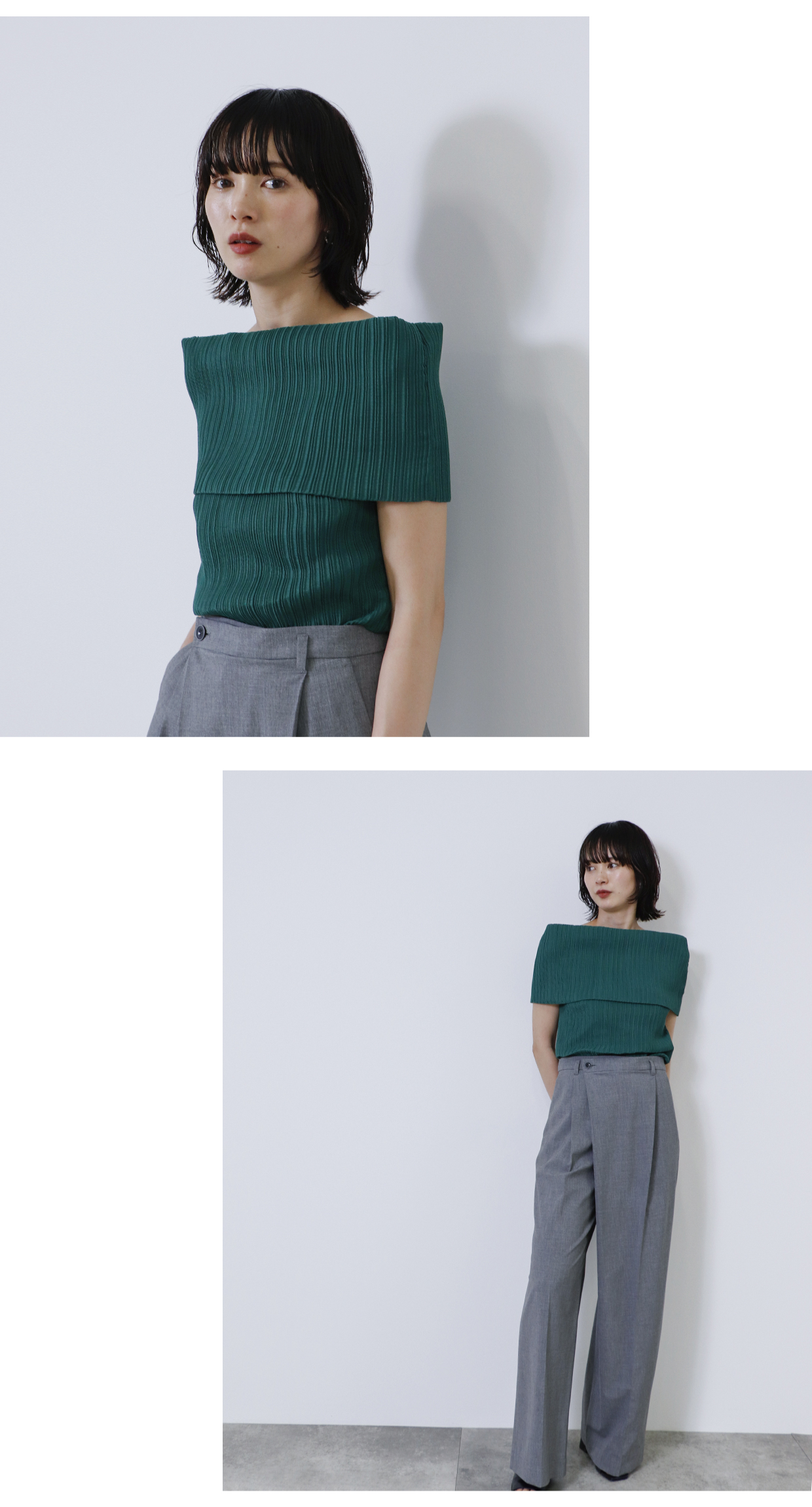 他のアイテムとのレイヤードでスタイリングの幅が広がります