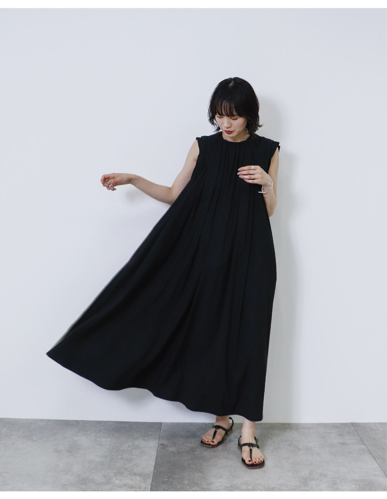 体が大きく見えないよう縦ラインを意識したシルエットです