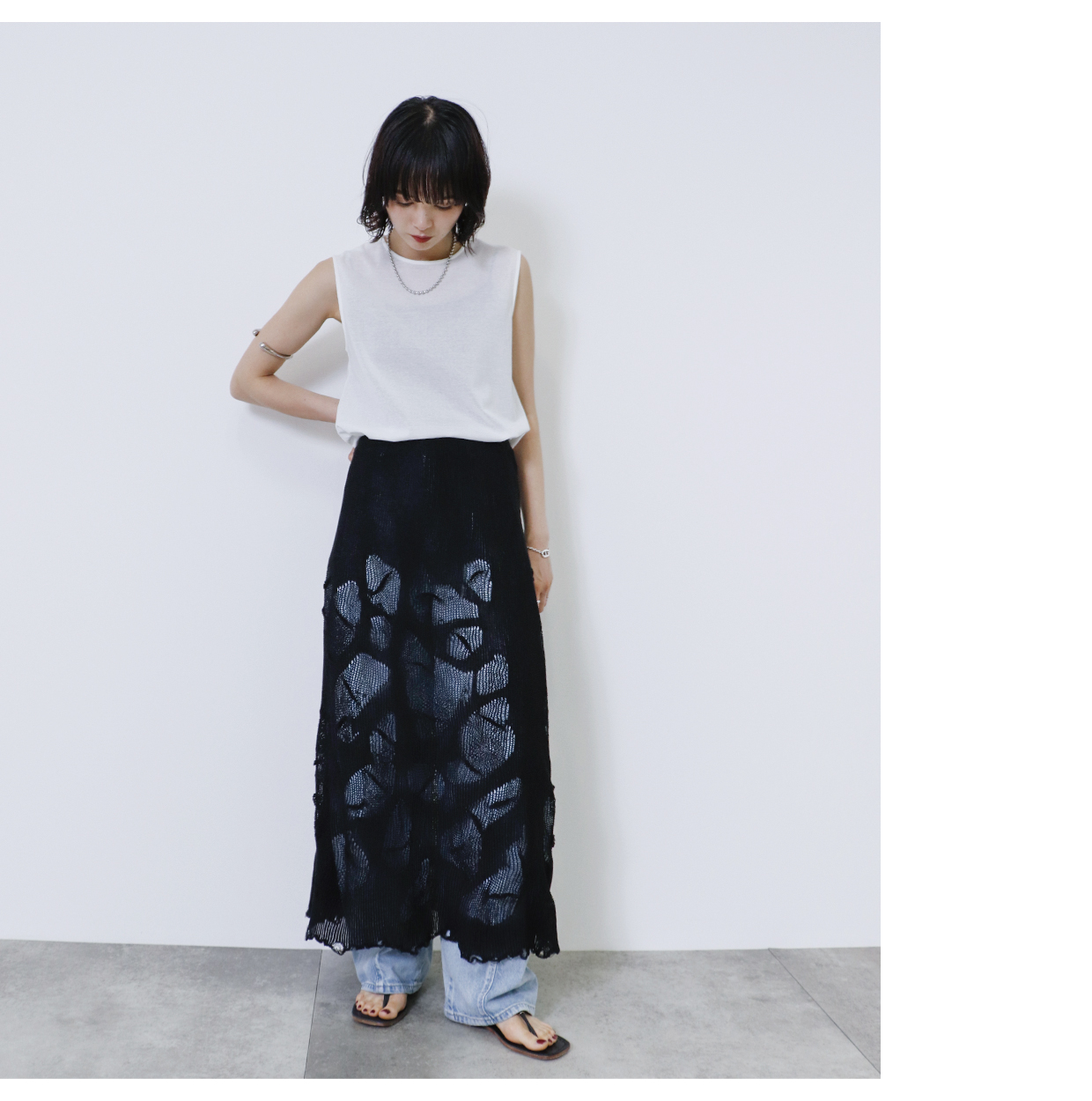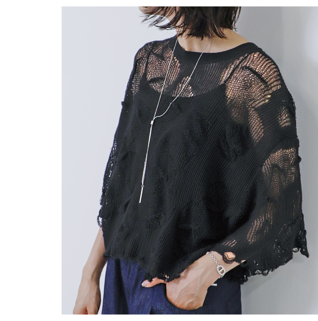 透かし柄やダメージ加工など複雑なテクスチャーが特徴