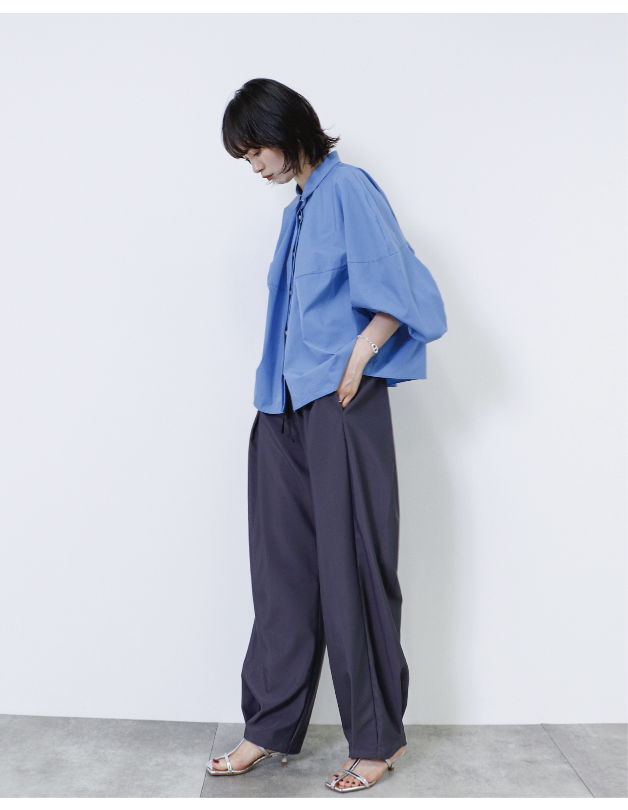 バルーンのような膨らみのあるシルエットが特徴的なシャツ