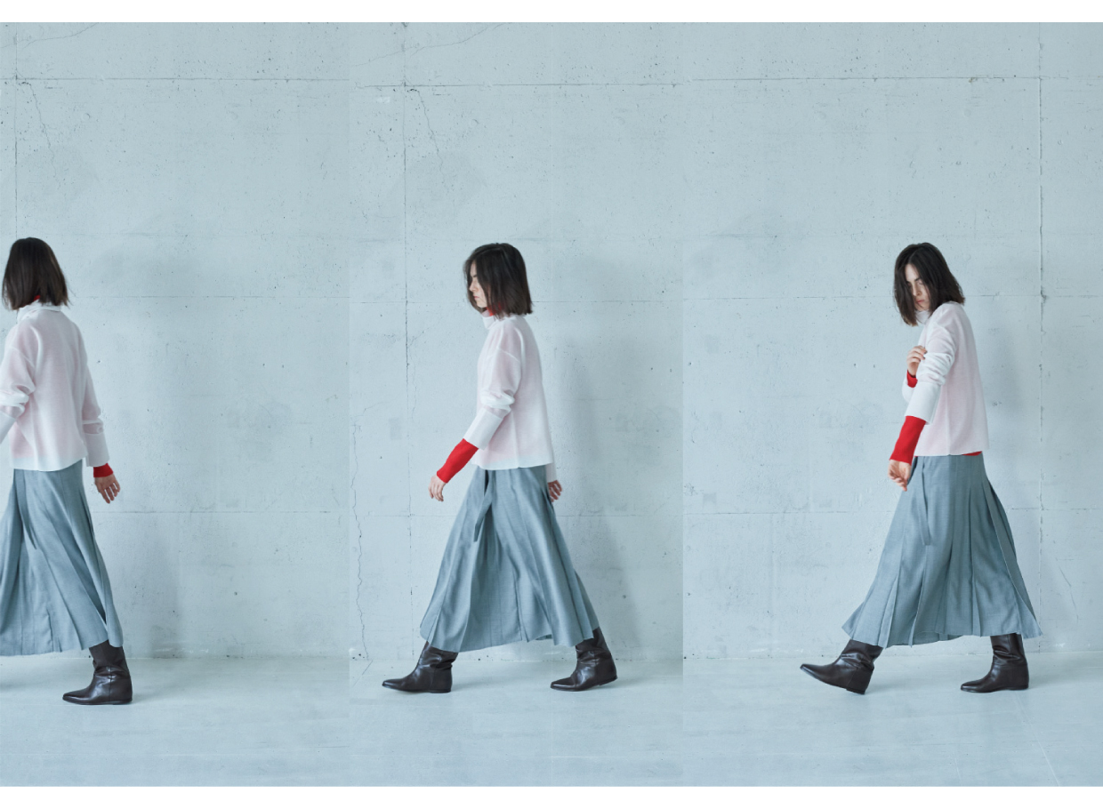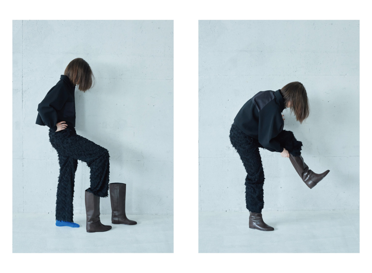 pants ¥28,600 ballerina flats ¥26,400/ TSURU By MARIKO OIKAWA belt ¥19,800/ MAISON BOINET |