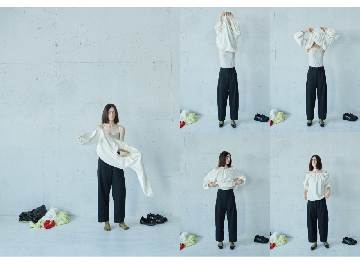 pants ¥27,500 ballerina flats ¥26,400/ TSURU By MARIKO OIKAWA T-shirts ¥13,200 |