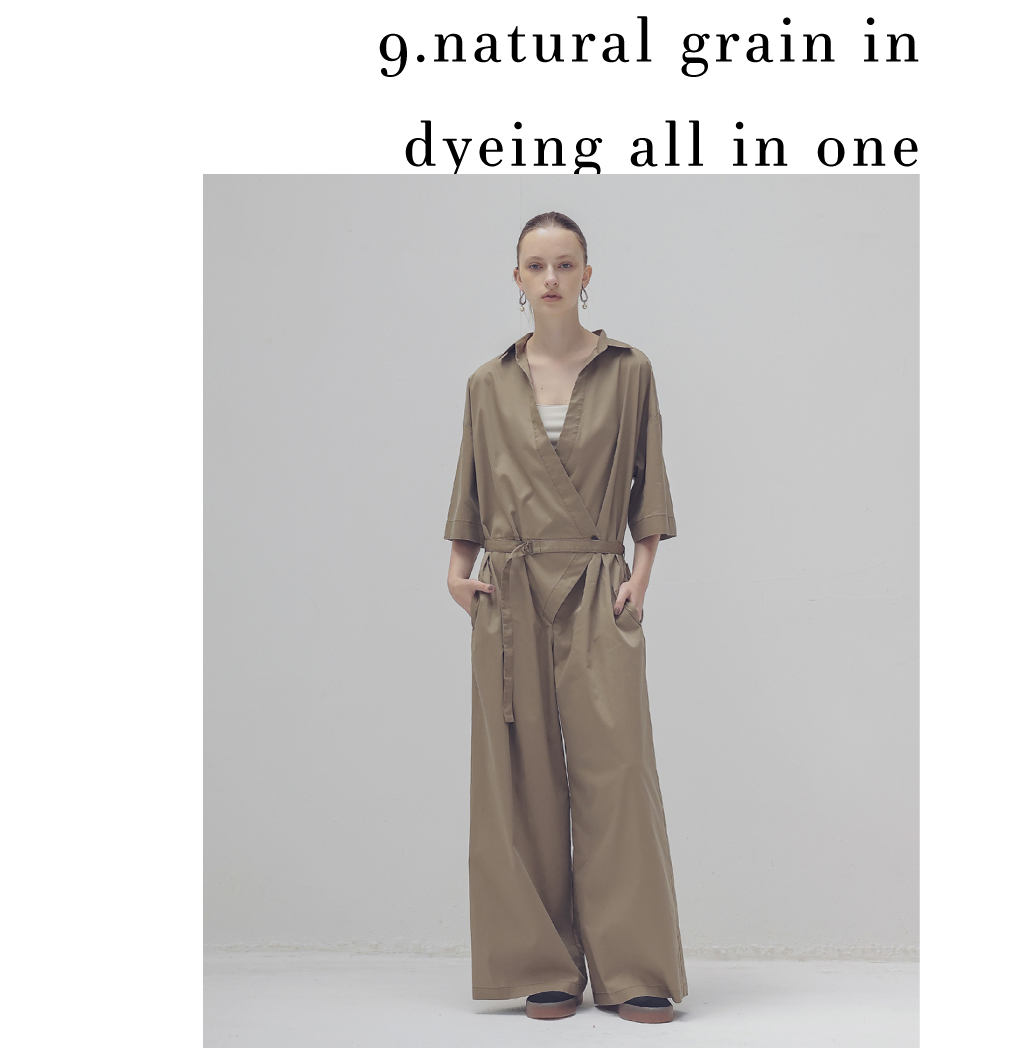 シャツカシュクールのようなフロントデザインがポイントのオールインワン