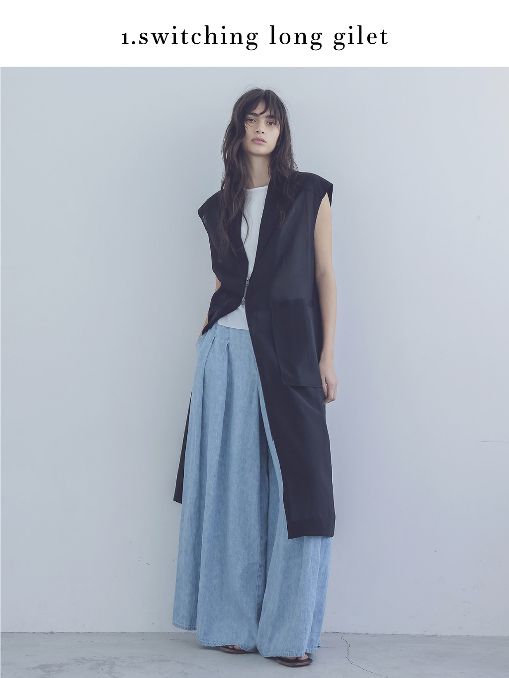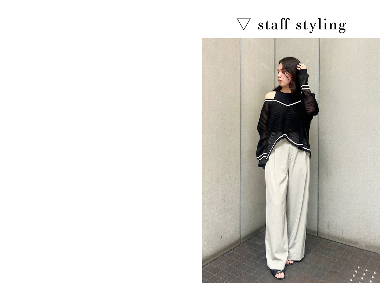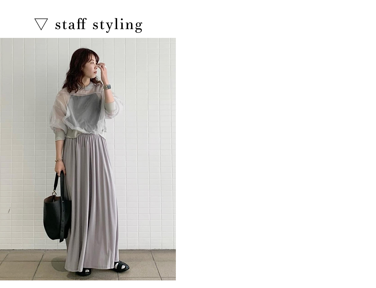 透けすぎない独特の風合いがニットやジャケットとの異素材ミックスにマッチ