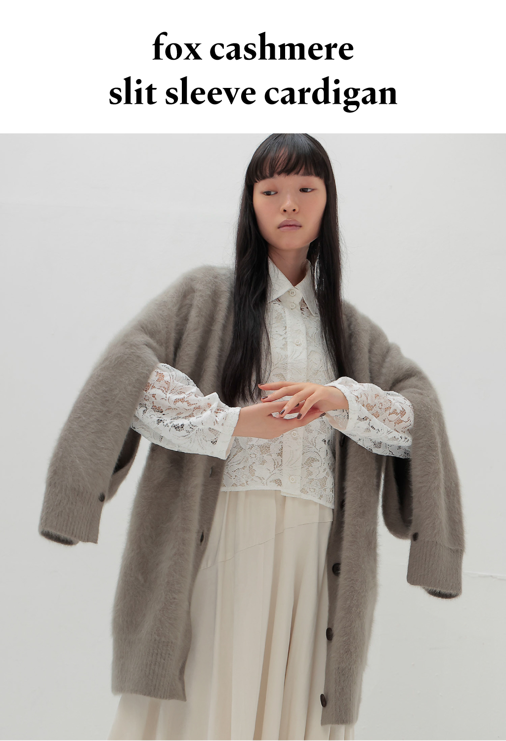 脇下から袖口にかけて施したスリットが、スタイリングにひねりをプラス。