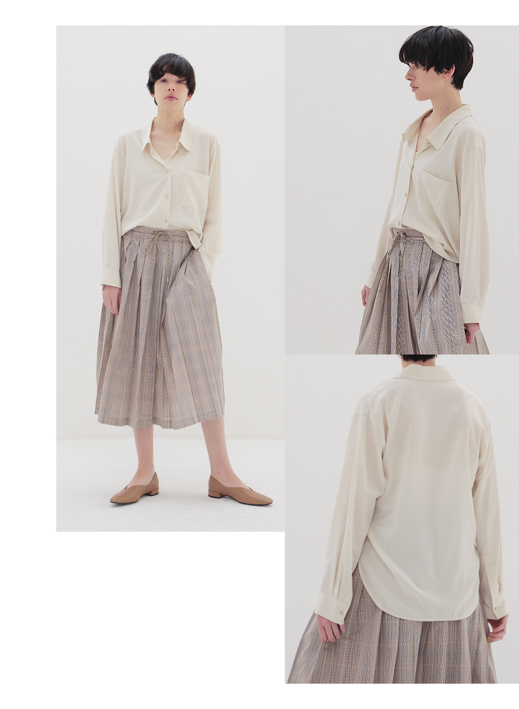 素材感、スタイリングに抜けを生むカラーリング。