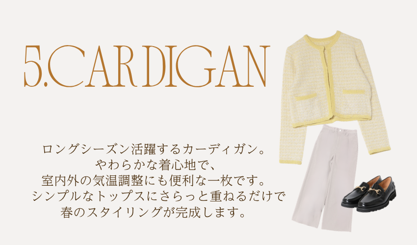 キーネックリラックスカーディガン ¥16,500(tax in)