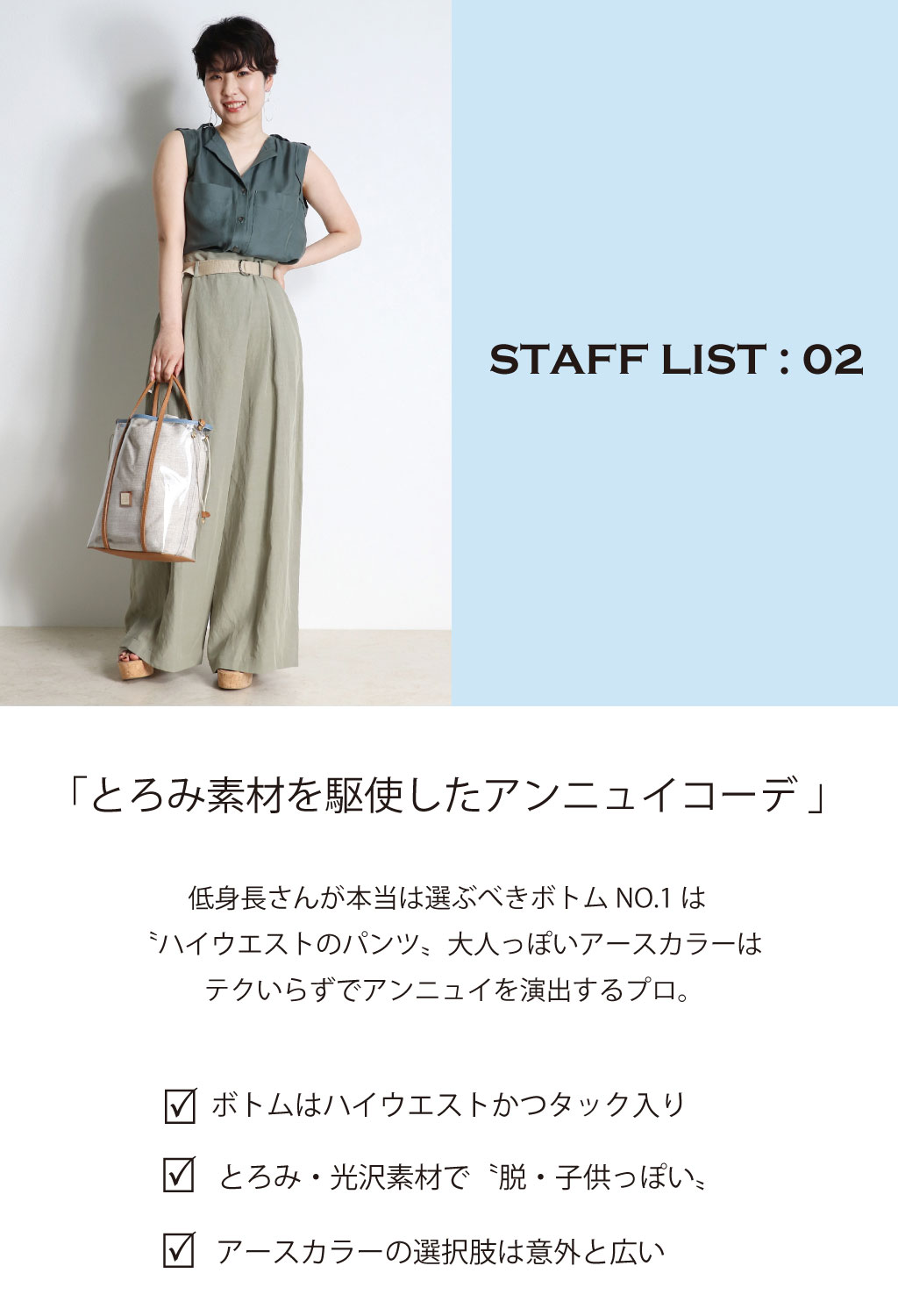 ブラウス(DRESSLAVE)¥16,500 ※5月入荷予定/パンツ(TITE in the store)¥20,900/バッグ(TITE in the store)¥24,750/シューズ(DRESSLAVE)¥24,200/ピアス(参考商品)