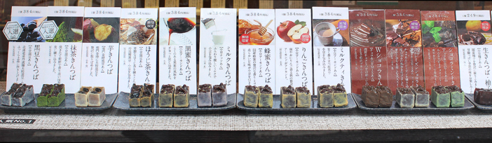 ウィンドーを覗くとずらりと並んだきんつばの種類に驚きます。