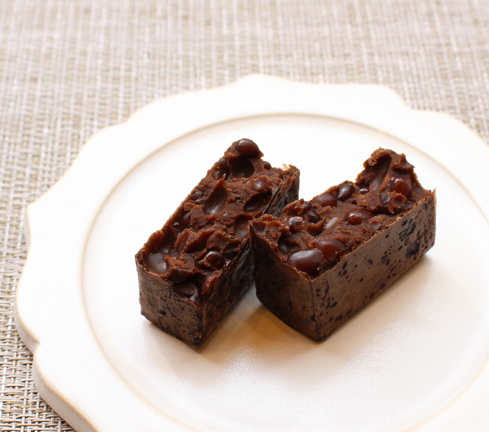 チョコレート風味をベースに小豆を楽しむ和のブラウニーの様なスイーツです。