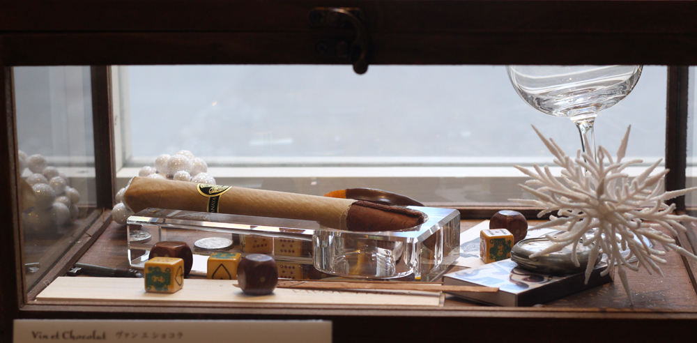 ウインドー越しに葉巻が陳列されていてダンディズムな印象。