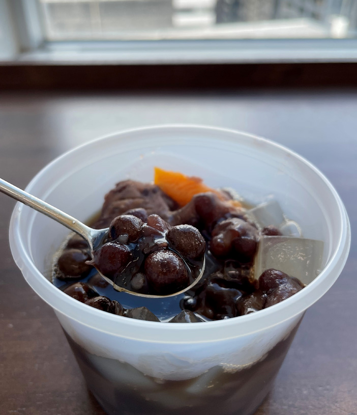 右上のあんこは、黒蜜と一緒に全体に絡むように柔らかめ。