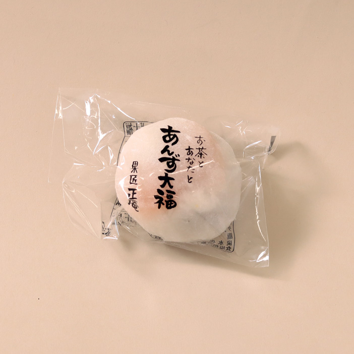 ころんとしたフォルムとパッケージの「お茶とあなたとあんず大福」の文字が興味をそそります。