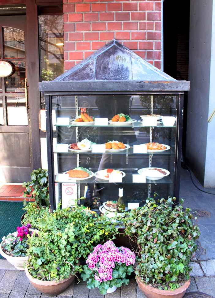 ウインドーに並ぶ食品サンプルがまたいい感じ。